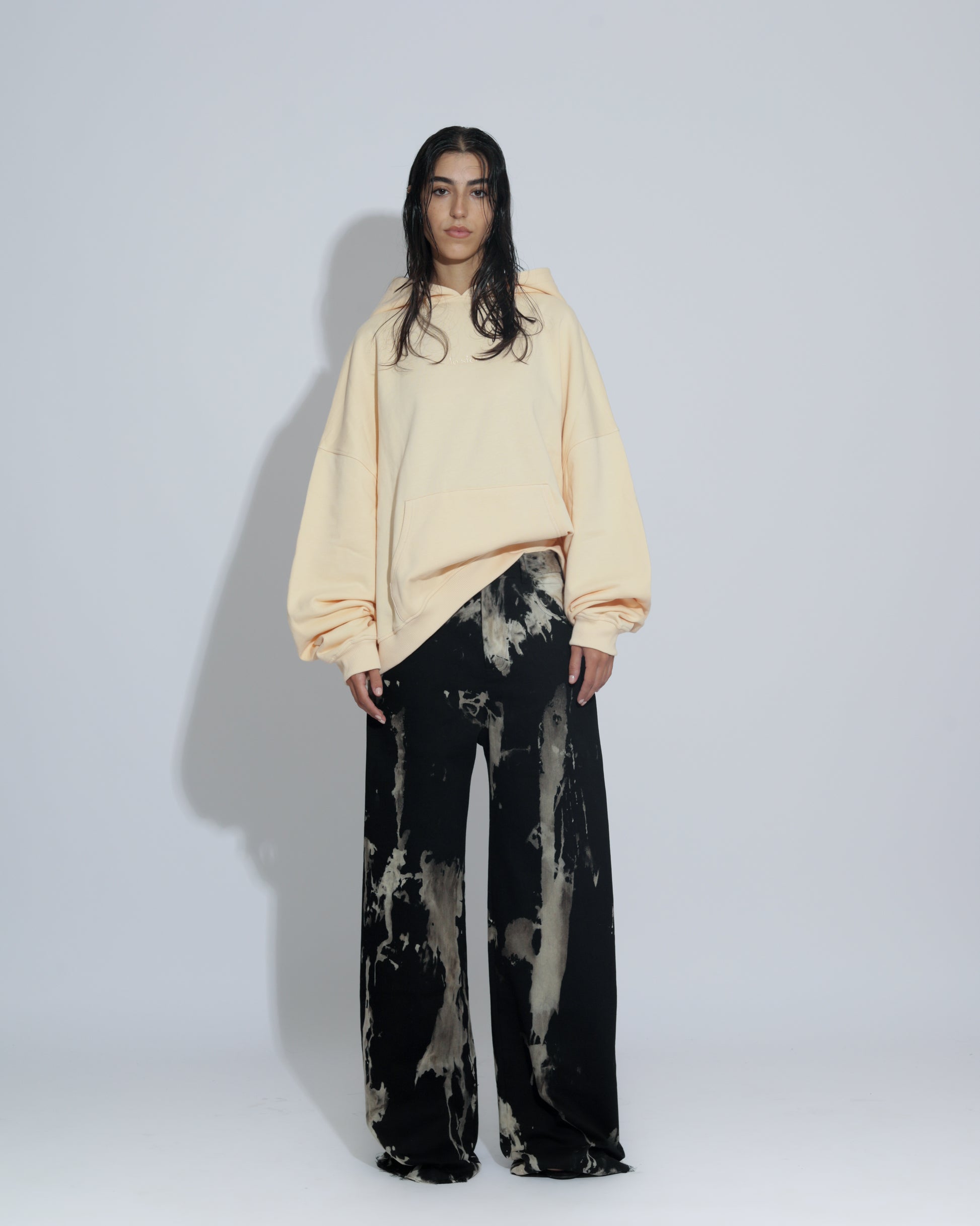 The classic low waist, with super wide leg trousers.